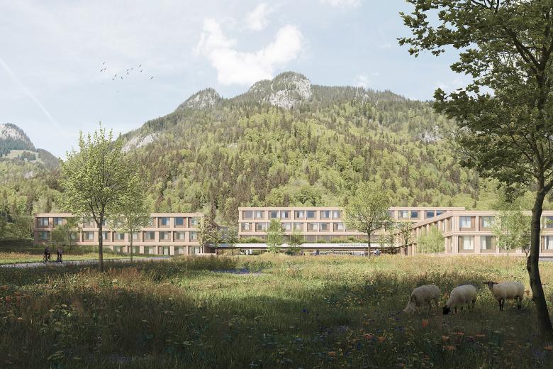 Die Herausforderung – Noch wächst auf dem Grundstück, wo in ein paar Jahren das neue Leitspital in Betrieb gehen soll, Klee. Im Hintergrund zeichnen sich die sanften Berggipfel ab, es herrscht dörfliche Idylle. Das soll so bleiben, auch wenn hier in ein paar Jahren das neue Leitspital mehr medizinisches Angebot zusichern wird als die bisherigen Spitäler in Bad Aussee, Rottenmann und Schladming zusammen. Und hier ist auch schon eine der größten Herausforderungen im Wettbewerb auszumachen: Ein 230-Betten-Spital in Hanglage zu planen, mit kurzen Wegen, einfacher Orientierung, ohne dabei drei Geschoße zu überschreiten.