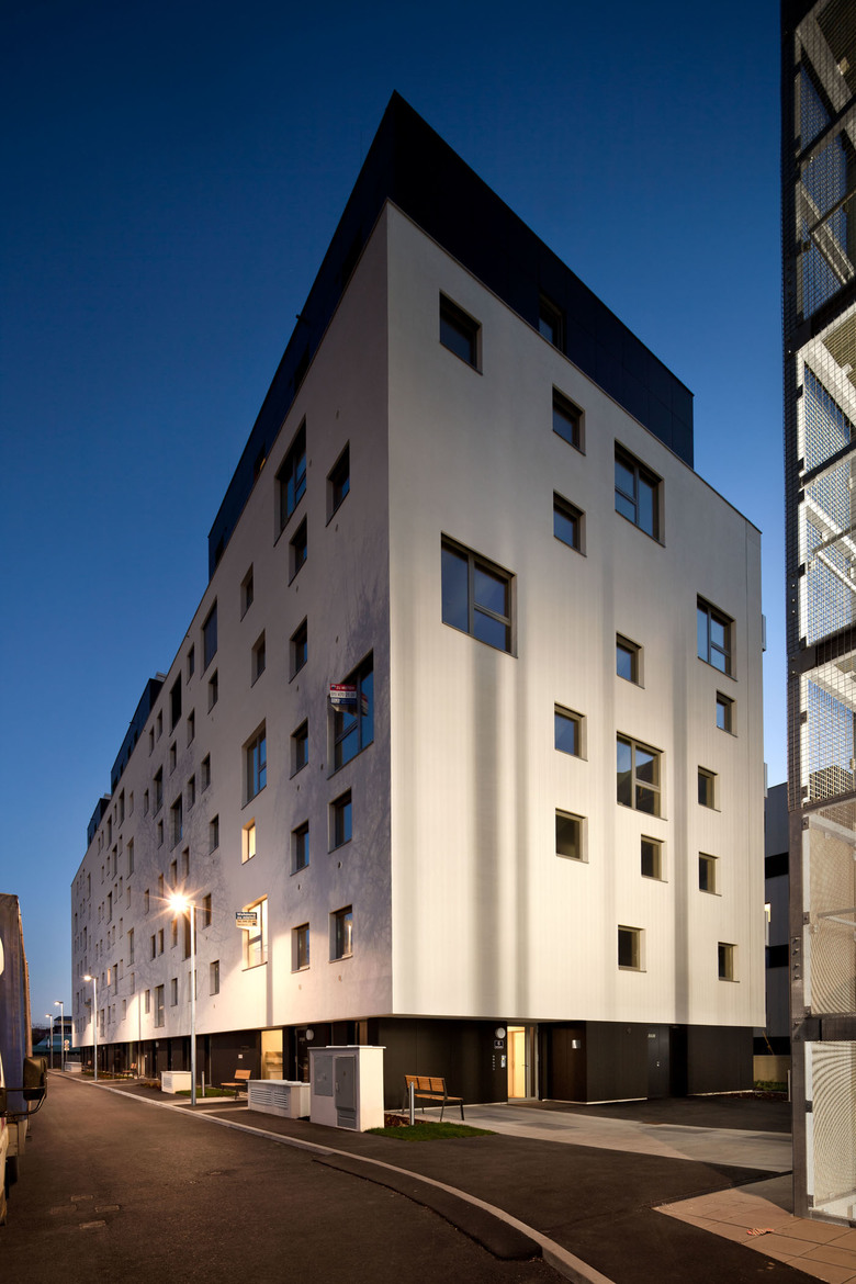 Extrem flexibel – Um die Bauzeit zu verkürzen und eine große Flexibilität im Wohnungsinneren für spätere Wünsche zu ermöglichen, wurde das Gebäude in Stahlskelettbauweise mit aussteifenden Stahlbetonelementen und einer maximalen Anzahl an Wänden in Leichtbauweise errichtet.