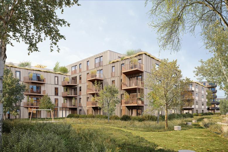 Ass in der Wohnung – Die vier- bis sechsgeschoßigen Häuser bringen über 200 Wohnungen für Singles, Paare und Familie unter. In einigen Wohnungen schaffen sogenannte Jokerräume noch mehr Flexibilität: Sie dienen als Homeoffice oder Schlafnische und können dank abänderbaren Wänden den Wohnraum erweitern.