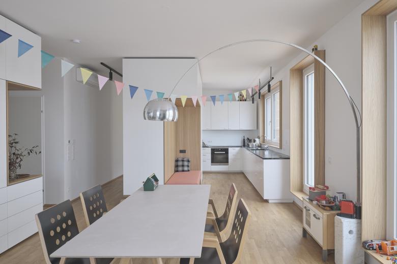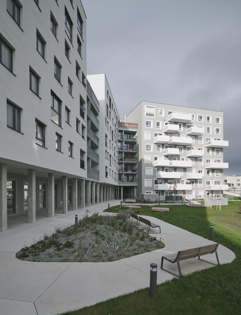 In der großzügigen Erdgeschoßzone mit einer Raumhöhe von vier Metern werden Dienstleistungs- und Handelsbetriebe, also Lebensmittelgeschäfte, Kindergarten, Gastronomie und kleine Geschäfte für Belebung und Durchmischung sorgen. Die Wohnungsgrößen liegen zwischen 47 m² – 128 m². Jede Wohnung erhält – das ist in Wien ja längst Standard – einen eigenen Freibereich in Form einer Loggia, Balkon oder Terrasse.