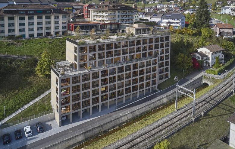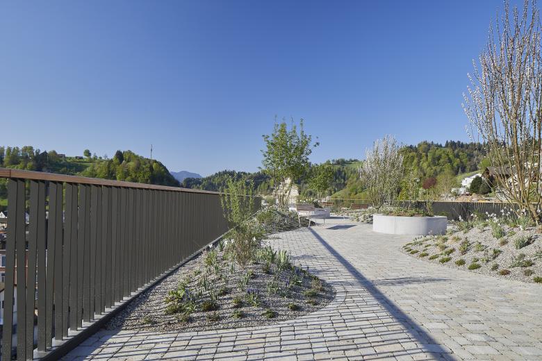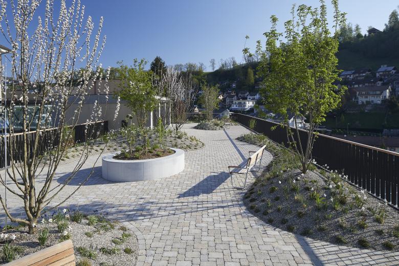 Im Schatten der Pergola oder im etwas abgetrennten Privatbereich sich von der Sonne wärmen lassen oder auf der grossen öffentlichen Dachterrasse Weitblick in die Berge und ins Dorf geniessen: Auf den zwei Terrassen des Betreuten Wohnens in Wolhusen blüht und duftet es in allerlei Töpfen und Hochbeeten – ein barrierefreies, sicheres Naturerlebnis auch für mobilitätseingeschränkte Menschen.