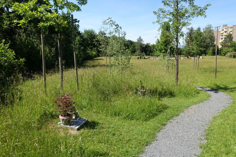 Gezielt erhaltene Baumbestände, Neupflanzungen und zusätzliche Bestattungsangebote wie ein Themengrab Wald oder Wiesengräber fördern die Biodiversität und schaffen zusätzlichen Lebensraum für Flora und Fauna.
