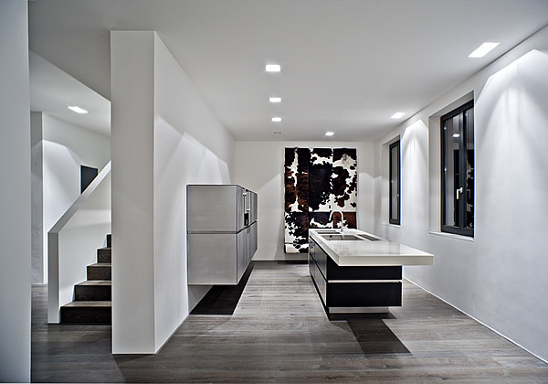 Ein Altbau in Fachwerkbauweise erhält einen modernen Sichtbetonkubus zur Erweiterung seiner Wohnfläche. Dieser äußere Kontrast findet in einer komplett neuen Innenarchitektur des gesamten Gebäudeensembles seinen atmosphärischen Höhepunkt.