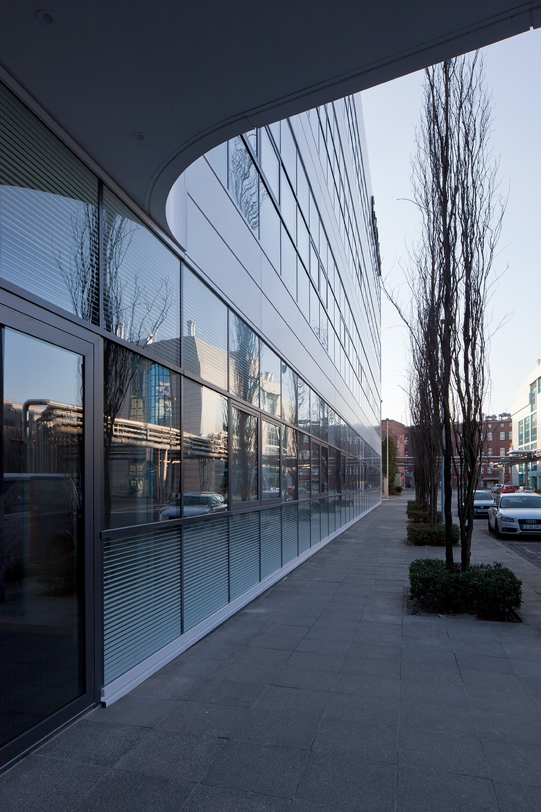Insbesondere die Gebäudehülle wurde nach energetischen und gestalterischen Gesichtspunkten komplett erneuert. Die neue Fassade unterstützt durch ihre Klarheit, Dynamik und Präzision die Wahrnehmung der Forschungs- und Entwicklungstätigkeit der Carl Zeiss Meditec AG.