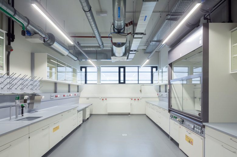 Hermsdorf, 20.5.2014 Der am 7. Mai eingeweihte Forschungsbau von Gewers Pudewill wurde aufgrund der dynamischen Entwicklung des IKTS am Standort Hermsdorf in Thüringen benötigt. Die Berliner Architekten konzipierten den zweigeschossigen und über 5.700 Quadratmeter großen Erweiterungsbau als einen markanten und identitätsstiftenden Solitär. Südlich der Bestandsbauten des Instituts und eingerahmt von Industriegebäuden sowie der Autobahn A9 reagiert der Baukörper in Form eines Parallelogramms auf die heterogene Umgebung. Zugleich schafft der Neubau auf diese Weise eine Verbindung zu Bestandsgebäuden des Instituts und lässt nach Süden Raum für künftige Erweiterungen.