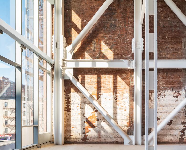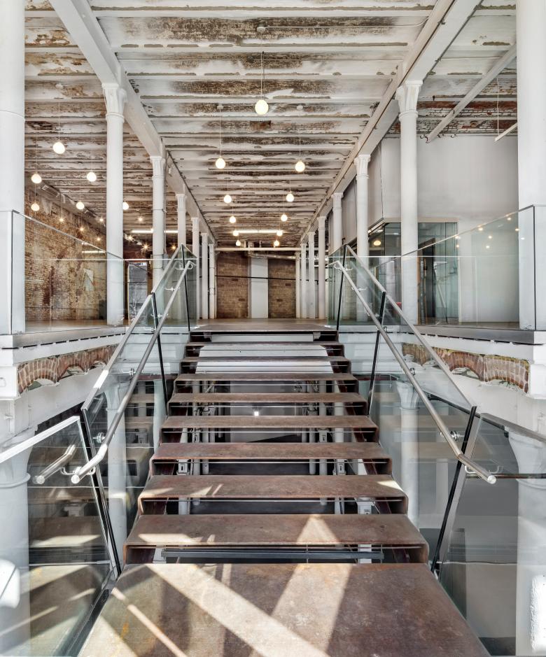 The Malt House renovates and expands an early 20th-century warehouse block for mixed use development. The scheme preserves the original building—built over time as a brewery—and places new construction above it, clearly demarcating it from the old. Strategic architectural and structural interventions maintain the spatial quality of the complex to support the new program. A new glass facade completes the street wall, melding past and present through its treatment of scale, texture and color. Above the existing setback, five new stories of “Class A” commercial office space rise as a minimalist, reserved glass volume.