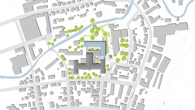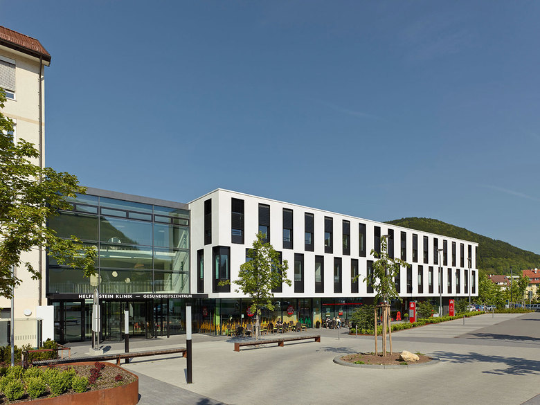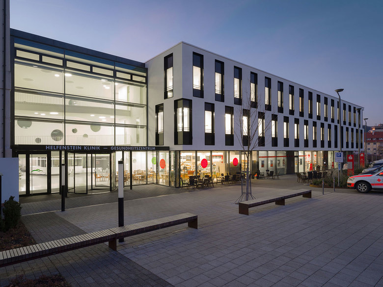 Am Aufstieg vom Alpenvorland hinauf zur Schwäbischen Alb liegt die Stadt Geislingen an der Steige. Hier steht seit Beginn des 20. Jahrhunderts die Helfenstein Klinik. Unser Büro erhielt 2009 den Auftrag einer Umstrukturierung des gesamten Komplexes. Die Aufgabe war klar definiert: Sicherung des Klinikstandortes durch Teilabriss und Modernisierung der bestehenden OP- und Intensivbereiche und der Notfallaufnahme sowie Erweiterung um ein Gesundheitszentrum mit Arztpraxen, Dialysezentrum, Apotheke und Café. Durch die räumliche Nähe zwischen bestehender stationärer und ambulanter Behandlung wird eine Verzahnung erreicht, die viele Infrastrukturelle Verbesserungen mit sich bringt.