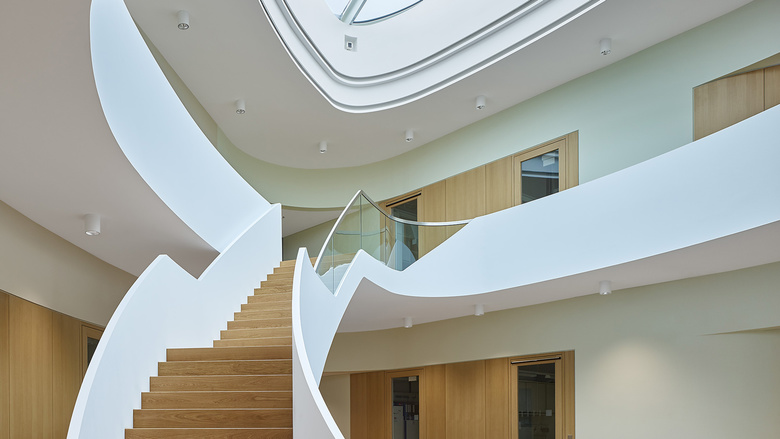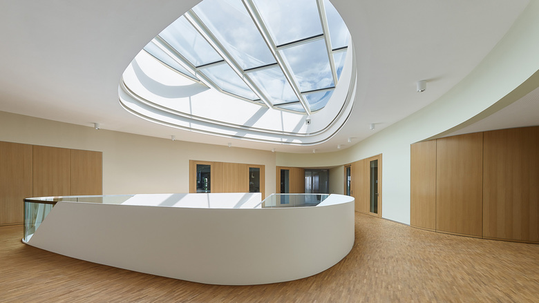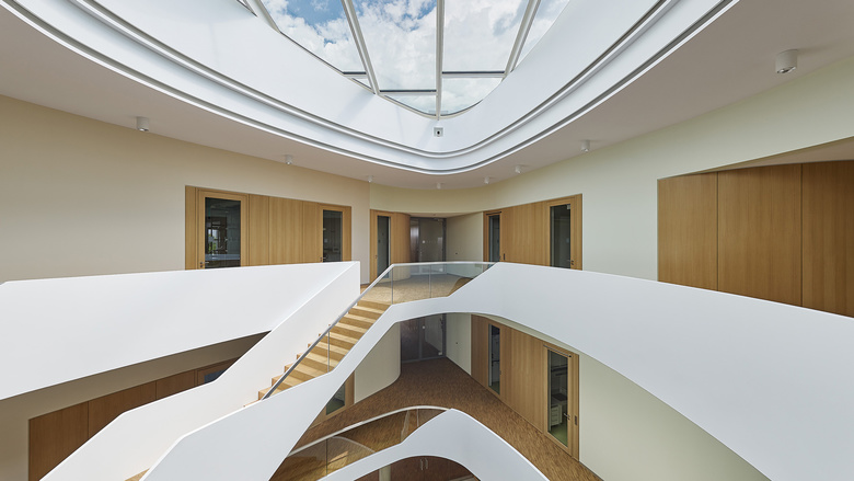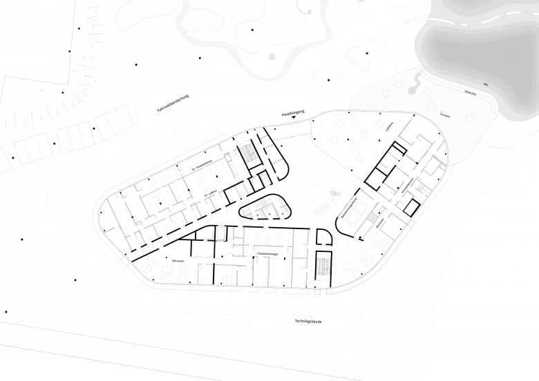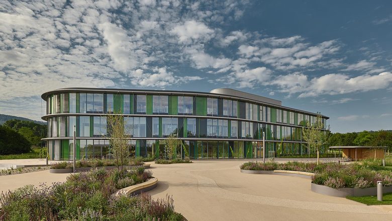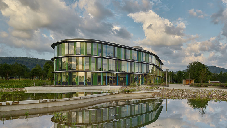 Im ersten Bauabschnitt wurde das Technikum des Unternehmens realisiert. Die freie Ausformung der Baukontur ermöglicht außerordentlich effiziente Laborgrundrisse mit S1 und S2 Laboren. Zudem wurden labornahe Arbeitsplätze, Büroräume vom Einzel- bis Großraumbüro sowie verschiedene Besprechungsräume und eine Cafeteria realisiert. Die organische Formensprache des Gebäudes zieht sich von der äußeren Gestaltung bis in den Innenraum. Der künstlich angelegte See mit vorgelagerter Terrasse bringt den besonderen Bezug zur Natur und zum Element Wasser unmittelbar zum Ausdruck. Damit gewährleistet bereits der erste Bauabschnitt des neuen Firmensitzes eine überzeugende Adressbildung.