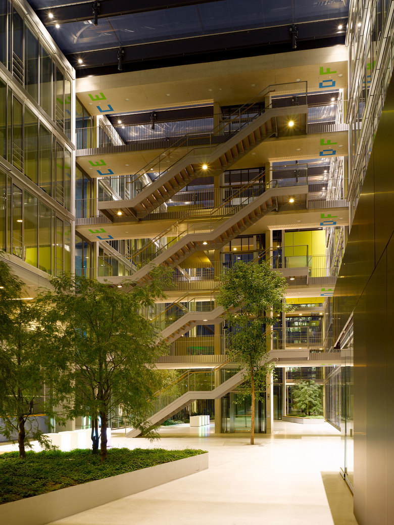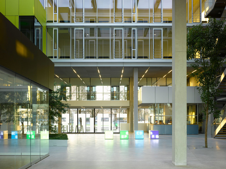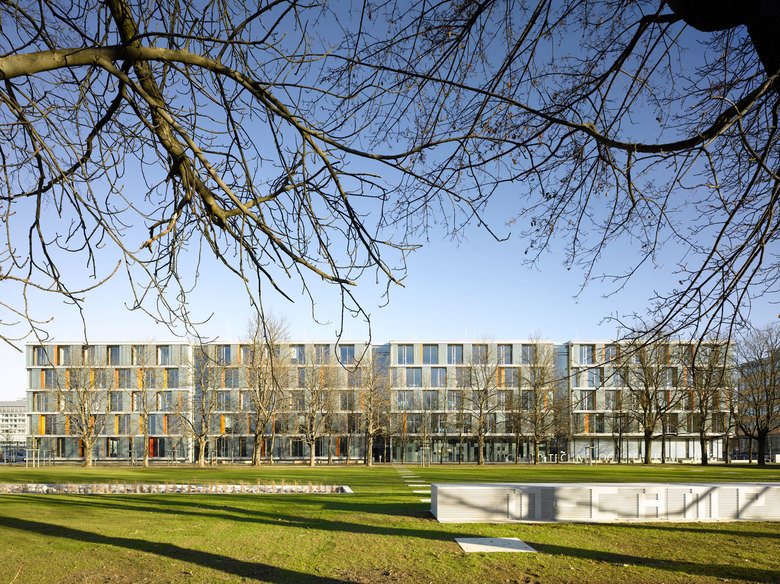 Die vorhandene, ringförmige Randbebauung der Stadtwerke München als städtebauliches Ordnungsprinzip wird aufgegriffen und bildet eine Einheit mit dem Technologiepark. Das Baufeld wird als Campus mit einer klar ablesbaren , modularen Baustruktur entwickelt, die sukzessiv realisiert werden kann.