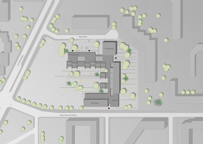 In den 70er Jahren errichtete die ‚Neue Heimat Städtebau Bayern GmbH’ die Wilhelm-Röntgen-Realschule als eine von vier baugleichen Schulen in München Neuperlach. Um den Erfordernissen zeitgemäßer Bildungseinrichtungen zu entsprechen und bauliche und funktionale Mängel zu beheben, wurde das Schulgebäude mit Kindertageseinrichtung, Verwaltungstrakt, Mensa und Sporthalle von unserem Büro grundlegend saniert. Die Instandsetzung erfolgte in zwei Bauabschnitten bei teilweise laufendem Betrieb.
