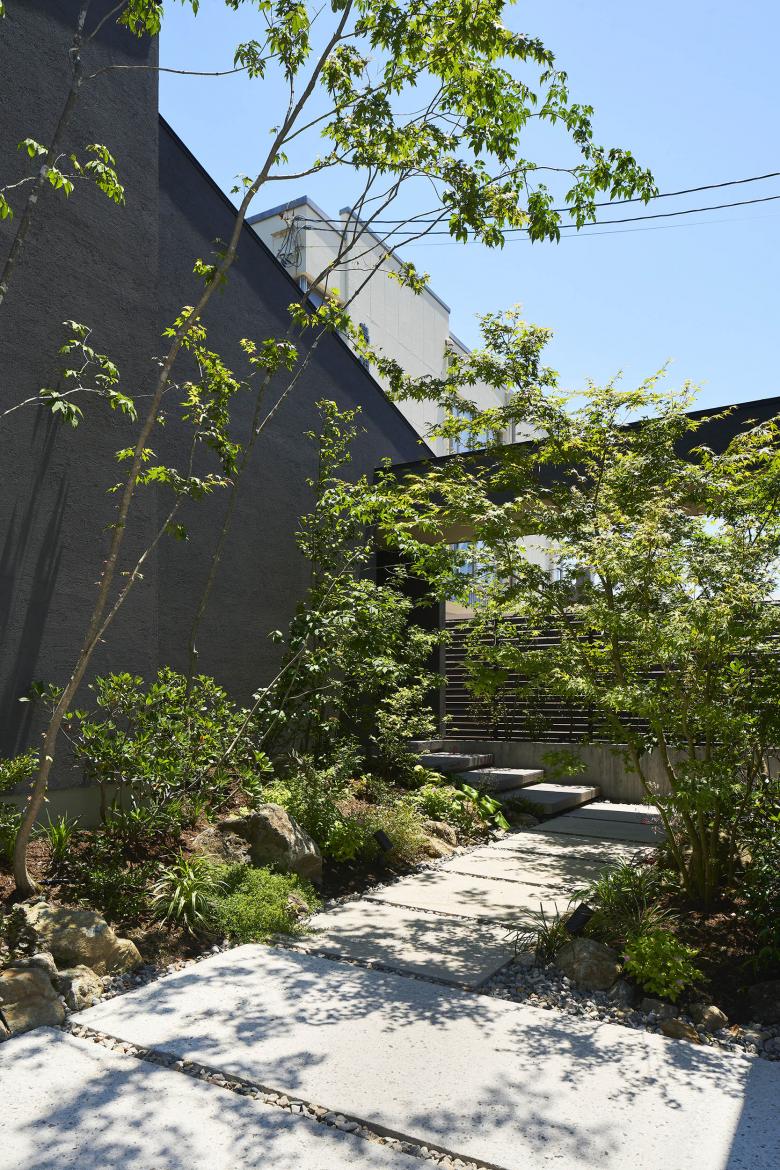 The north garden, rear garden, and east garden bring light into the interior and are designed primarily for visual enjoyment, while the alley garden near the entrance and the west garden contribute to the richness of the streetscape. Each garden is planted with a variety of flowers that bloom throughout the seasons, offering changing colors over the course of the year. These garden scenes can be glimpsed from all living spaces, functioning as devices that incorporate the rhythms of nature into everyday life.