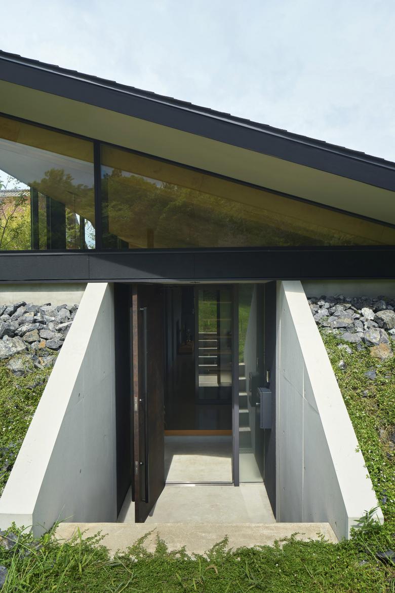 Over time, the vegetation on the hill will grow and gradually envelop the base of the building in greenery. The architecture will come to settle into the land, forming a scene as if a large roof had been gently placed upon the hill itself.
