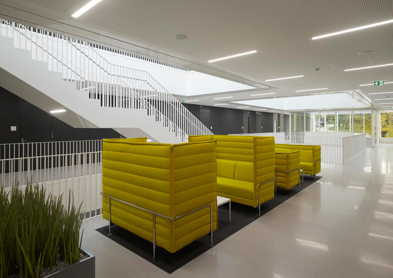Das Gebäude schiebt sich in die Höhendifferenz des Grundstücks von 4–5 Metern ohne dass die Traufe dem Gelände folgt. Damit präsentiert es sich im Süden drei- und im Norden viergeschossig. Im Neubau werden modernste technische Anforderungen erfüllt und zudem räumliche Angebote für interdisziplinäre Kommunikation, Austausch und Entspannung geschaffen. Mittig teilt er sich in einen „internen“ Laborbereich und einen „öffentlicheren“ Bürobereich. Ein großer Raum zur Kommunikation und Erschließung verbindet beides.