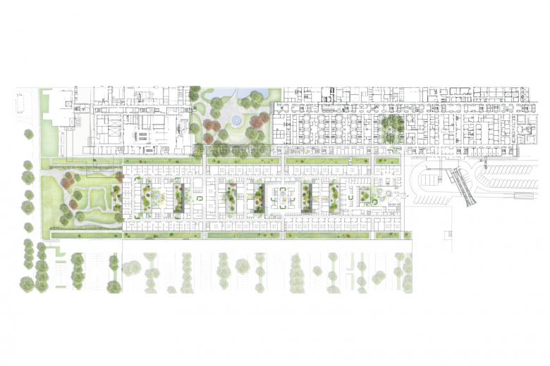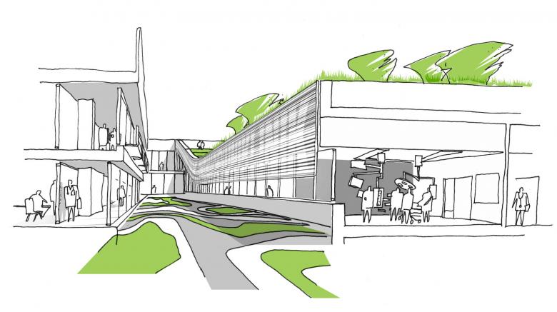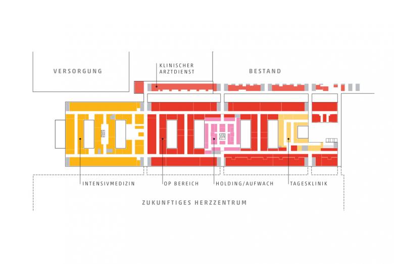 Der in den 70ern entstandene high-tech Komplex des Uniklinikums der RWTH Aachen bietet nahezu allen Einrichtungen der Medizinischen Fakultät Platz und steht heute unter Denkmalschutz. Der Krankenhauskomplex wird erweitert um einen zentralen Operationsbereich, eine Intensivstation und einen neuen Eingangsbereich. Modernste OP-Strukturen und Intensivmedizineinheiten machen es so zum wichtigsten Baustein der Aachener Gesundheitsversorgung. Große Teile des Gebäudevolumens sind unter die Erde geschoben, geben so den Blick frei auf das denkmalgeschützte Gebäude. Die aufgelockerte Grünlandschaft breitet sich wie ein Teppich über das Gebäude und integriert es somit in die bestehende Parklandschaft, die gleichermaßen der Öffentlichkeit, den Patienten und dem Klinikpersonal Raum für Entspannung bietet. Das geduckte Gebäudevolumen erhebt sich gleich einer sanften Welle zu einer großzügigen Geste, dem öffentlichen Eingangsbereich. Von hier orientieren sich Patienten und Angestellte intuitiv, werden geführt durch grüne Ausblicke und einfallendes Tageslicht. Ungeachtet der Absenkung sind die neuen OP- und intensivmedizinischen Einheiten so gestaltet, dass eine Maximierung der Tageslichtversorgung qualitativ hochwertige Räume für Patienten und Angehörige schafft.