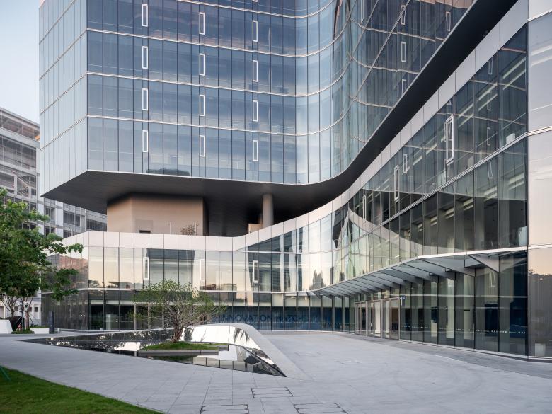 Das von HENN entworfene Innovation Center for High-Performance Medical Devices (IHM·GBA) liegt im Zentrum der ‚Bio Island‘ in Guangzhou, welche der biomedizinischen Forschung und Technologie gewidmet ist. Im Gebäude werden medizintechnische Hochleistungsgeräte entwickelt, daher vereint seine Gestaltung Labore und Forschungsräume mit Flächen für informellen Austausch und offenen Büroflächen.