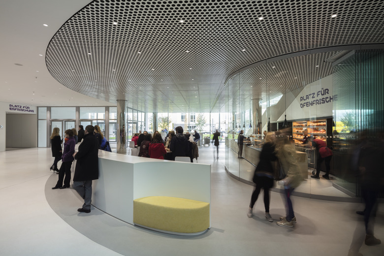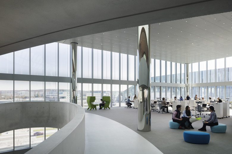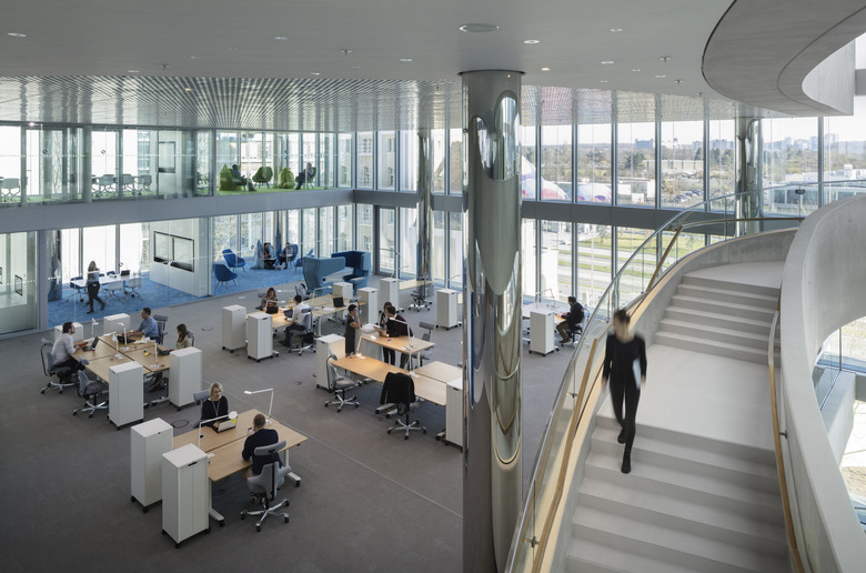 Auf jeder Ebene befinden sich zwei Arbeitsflächen, die sich diagonal gegenüberliegen. Jede Arbeitsfläche ist für eine Projektgruppe aus externen und internen Mitarbeitern vorgesehen, die an zukünftigen Innovationen temporär und projektbezogen zusammenarbeiten. Konzentrations- und Meetingräume sind entlang der Fassade und auf Mezzaninen angeordnet. Im Erdgeschoss befindet sich ein Café, eine Lounge und ein Auditorium; im ersten Obergeschoss eine Bibliothek, im obersten Geschoss eine Werkstatt.