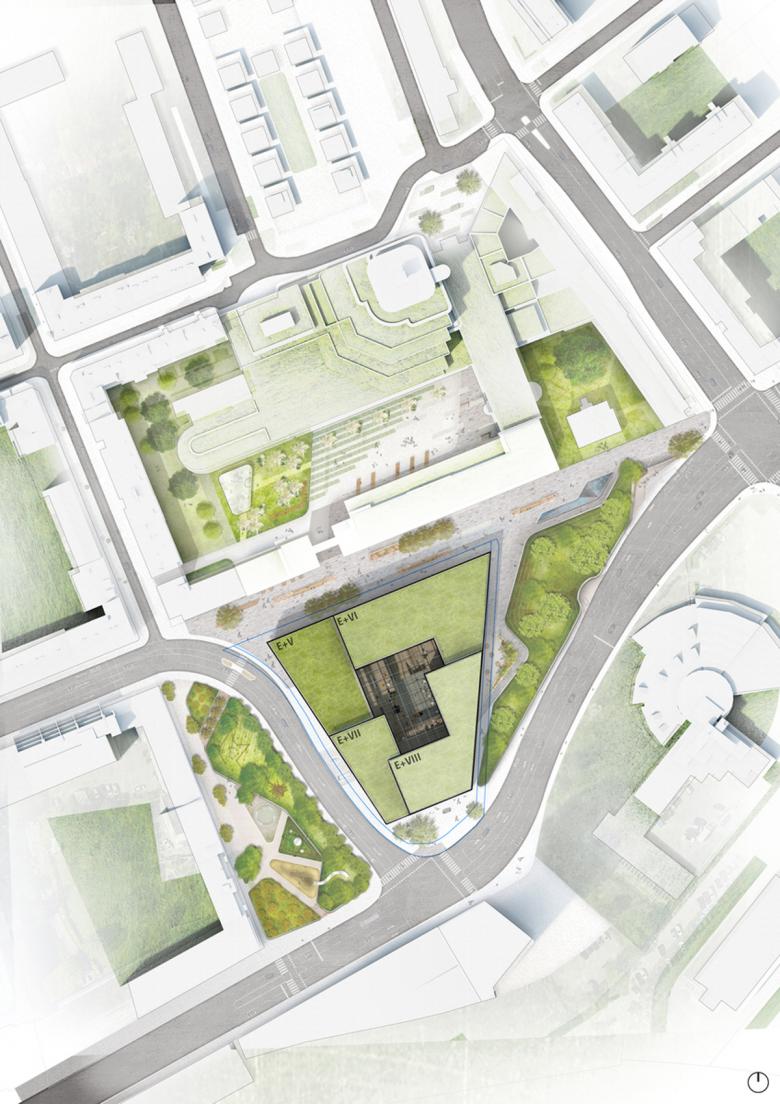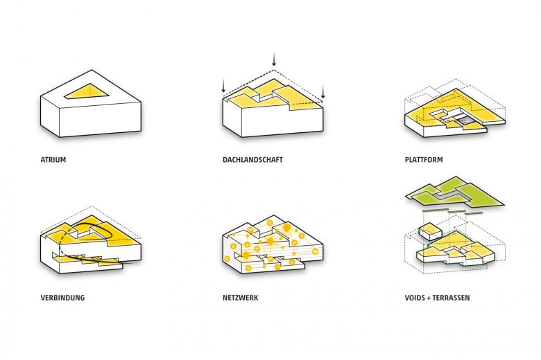 Die städtebauliche Lücke zwischen Stammareal und Blumau Tower wird durch einen Solitär als Baukörper geschlossen. 1.000 Mitarbeiter finden in der neuen Konzernzentrale der Raiffeisenlandesbank Oberösterreich eine Heimat. Ein urbaner, vernetzter Gesamtstandort für Kollaboration und Kommunikation entsteht sowohl für die Bürger der Stadt Linz und die Mitarbeiter der Raiffeisenlandesbank Oberösterreich. Ein fließender Übergang aus dem städtischen Raum in das Atrium des Campus, welcher sich als Raumkontinuum bis zum individuellen Arbeitsplatz und auf die Dachterrassen hin ausdehnt, ist identitätsstiftendes Element des Innenraums und der Aussengestalt. Es entsteht eine dreidimensionale Plaza welche mehrere Geschosse durch diesen Luftraum zoniert, Büroflächen rhythmisiert und in Nachbarschaften gliedert. Die unteren Geschosse verschmelzen zu großzügigen, flexibel gestaltbaren Nutzungsbereichen und wandeln sich in den oberen Geschoßen zu modernen Bürowelten.