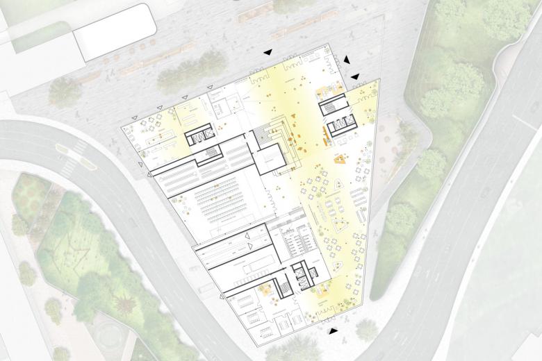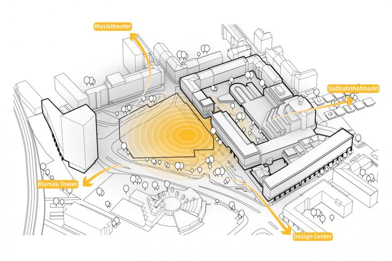Der Neubau der Raiffeisenlandesbank Oberösterreich wird zum zentralen Baustein des Campus und verwandelt das Areal zwischen dem Blumau Tower und dem Südbahnhofmarkt in ein innovatives und lebendiges Umfeld. Es liefert Impulse für Unternehmen durch Coworking Zones, Geschäfte, Gastronomie, Ausstellungsräume und schafft gleichzeitig eine erhöhte Freiraumqualität für alle Bürger.