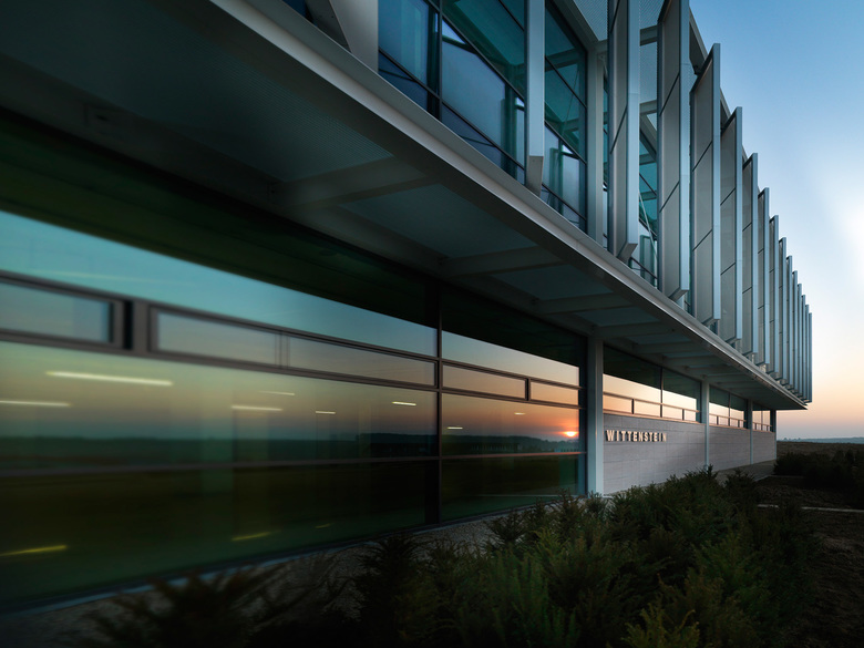 Mit dem Neubau der Firma WITTENSTEIN wurde das Ziel der Stärkung der Innovationsfähigkeit, die Halbierung von Entwicklungszeiten sowie die Entwicklung eines flexiblen, modular erweiterbaren Gebäudekonzepts mit Kommunikationsräumen zur Wissensgenerierung verfolgt. Die Lage des Gebäudes am Hang eröffnet die Möglichkeit, dass Denk- und Produktionsflüsse linear auf einer Ebene stattfinden können. Die Räume für Entwicklung, Produktion und Versand sind parallel entlang der Hauptachse des Gesamtkomplexes angeordnet. Durch diese gemeinsame Anordnung aller am Produktionsprozess beteiligten Bereiche wird Innovation maßgeblich begünstigt. Das Foyer - Marktplatz genannt, welches u.a. für Ausstellungen genutzt wird, erschließt den Kommunikationsfluss für die Öffentlichkeit. Der Kundenweg ist als Galerierundgang angelegt, der Einblicke in die Projekträume sowie in die Produktionsbereiche gewährt. Lichtdurchflutete, acht Meter hohe, akustisch optimierte Projekträume bieten viel Raum für kreatives und vernetztes Arbeiten. Die repräsentativen Kundenbesprechungsräume im Zentrum sind mit modernsten Präsentationstechniken und dem „Virtual Sky“, einem bewegten Himmel ausgestattet, der nach Untersuchungen vom Fraunhofer-Institut eine bessere Leistungsfähigkeit ermöglicht. Die Deutsche Gesellschaft für nachhaltiges Bauen hat das durchgängig ökologische und ökonomische Gesamtkonzept bereits mit dem DGNB Vorzertifikat in Gold honoriert. Ressourceneffizienz wurde beispielsweise durch den Einsatz von ökologischen, recyclebaren Materialien, eigener Stromerzeugung durch eine Kraft-Wärme-Kopplung Anlage, und einer PV-Anlage am Dach erreicht.