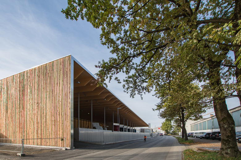 Im Kontext zum Lauteracher Ried und zu den Nachbarn präsentiert sich das Gebäude aus Schallschutzgründen größtenteils geschlossen, aber gibt gezielt im Bereich der Einfahrt den Blick auf die Natur wieder frei. Zur Industriestraße hin präsentiert sich das Gebäude als offene Schaubühne, auf der die Altstoffe gebührend präsentiert werden.
