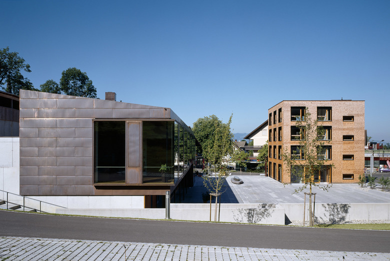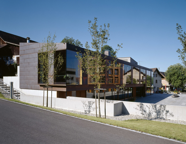 Das prämierte Projekt von Theo Lang/Karl Schwärzler fand in der Gemeinde keinen Zuspruch; in einem Bürgerbeteiligungsverfahren wurden Alternativen diskutiert. Inzwischen konnten ergänzende Grundstücke zugekauft werden, was den planerischen Spielraum erweiterte. Lang/Schwärzler bildeten mit Hermann Kaufmann, der ebenfalls am Wettbewerb teilgenommen hatte, eine Arbeitsgemeinschaft.