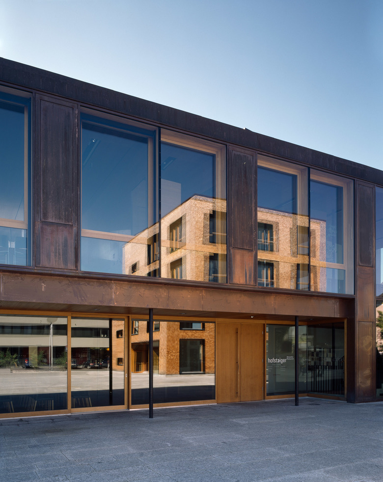 Das neue Zentrum bedeutete für die kleine Gemeinde ein „Jahrhundertprojekt“. Der 1999 durchgeführte Architekturwettbewerb erfasste das später ausgeführte Programm – Rathaus, Bräukeller, Mehrzwecksaal –, betraf aber etwas andere Grundverhältnisse.