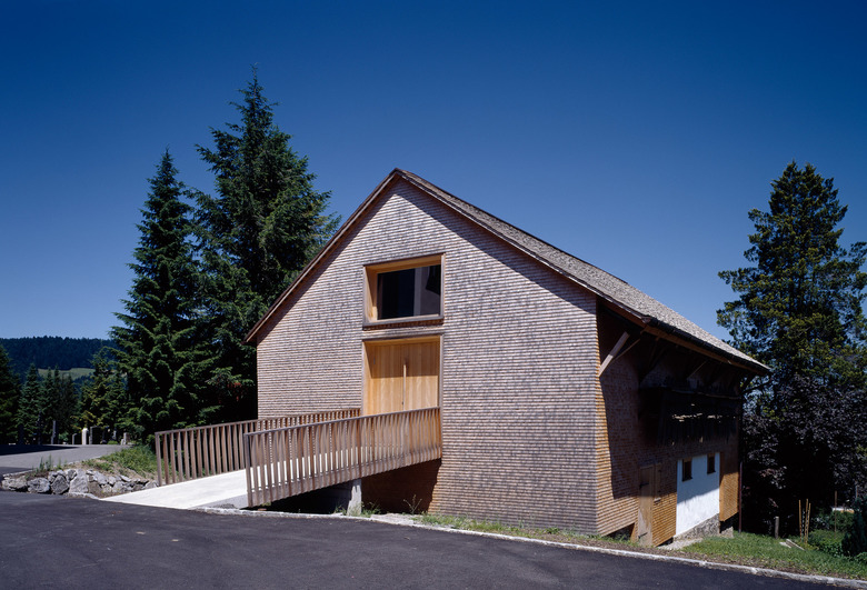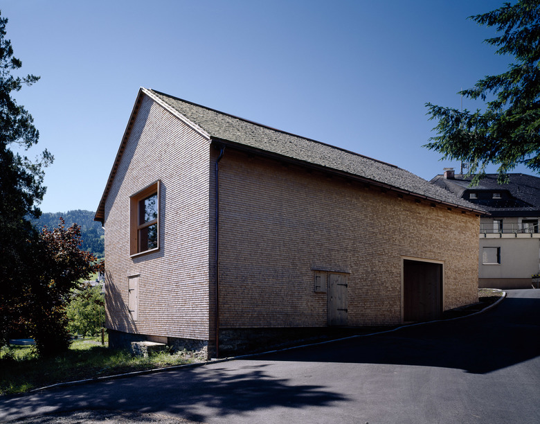 Der alte Stall in Alberschwende gehörte zum so genannten Mesmerhaus und steht in zweiter Reihe zum Dorfkern. Die Gemeinde unter Bürgermeister Walter Rüf beschloss, den Bau als kleines landwirtschaftliches Museum sowie als speziellen Ort für kleine Veranstaltungen, Tagungen, Konzerte, Feste neu zu nutzen. Bei der Adaptierung wurde möglichst viel von der Bausubstanz erhalten, für die nötigen Ergänzungen und Einbauten benutzte man lokale Weißtanne. So entstand auch eine selbstverständliche Erweiterung der Form- und Materialsprache des Ortes, ein Dialog zwischen den abstrahierenden Details der neuen Konstruktionen und den alten Bauteilen mit ihren rohen Oberflächen, die von der Handwerkstradition und den einst viel härteren Lebensbedingungen zeugen. Die neue Nutzung wird vor allem durch zwei große Lichtöffnungen und die breite Zugangsbrücke signalisiert.