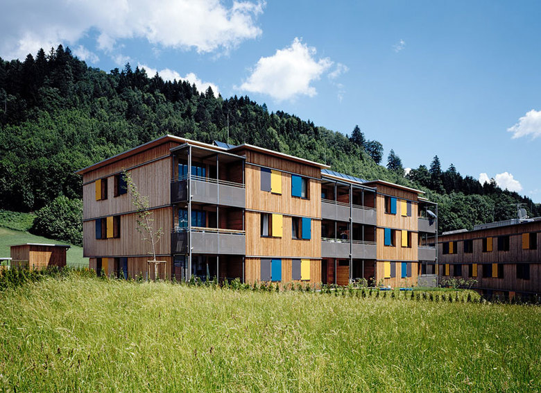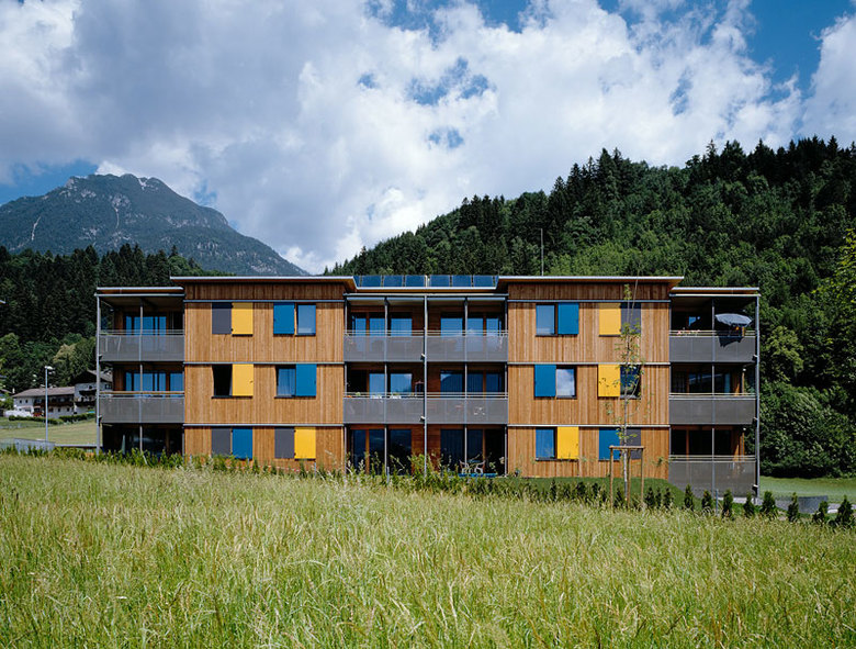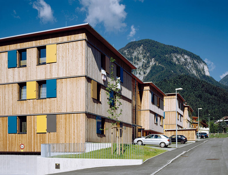 Mehrgeschossiger Wohnbau in Holz wird immer mehr gerade im Mietwohnungsbau als Alternative zu herkömmlichen Bauten gesehen. Dabei erhofft man sich neben der durchaus belegbaren Verminderung der CO2 Belastung (ca. Faktor 3) durch die Herstellung des Bauwerkes selbst eine Alternative zur herkömmlichen Materialwelt im Mehrwohnungsbau. So errichtet der gemeinnützige Wohnbauträger Neue Heimat Tirol auf den Niedermühlbichler Gründen in Jenbach eine Wohnanlage mit 67 Wohnungen in Holzbauweise und im Passivhausstandard. (Energieeinsparung für den Betrieb ca. Faktor 4 gegenüber Niedrigenergiehaus) Diese Anlage ist bereits der dritte Holzwohnbau der NHT, jedoch der erste in Passivhausqualität. Hier soll evolutionär ein weiterer Erfahrungsbaustein dazukommen und zudem ein Projekt entstehen, das in die Zukunft weist. Im ersten Bauabschnitt werden 42 Einheiten errichtet. Dieser bildet einen Hof, von dem aus alle Wohnungen erschlossen werden und der als Kinderspielfläche sowie großer Kommunikationsraum angeboten wird. Es sind hier auch alle großen Wohnungen angeordnet, ein familiengerechtes Wohnen ist hier das Hauptthema.