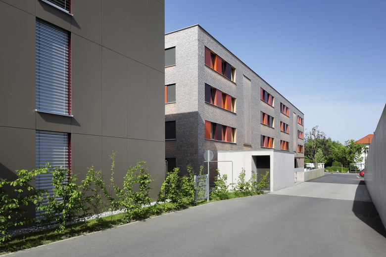 Von der Kirche bis zum Gemeindehaus bildet die Hofsteigstraße den eigentlichen Ortskern von Schwarzach. Das in diesem Bereich gelegene Grundstück wurde durch einen Brand frei zur Nachnutzung als Wohnquartier für junge Familien. Das langgestreckte Areal wird nordseitig von einem steilen Hang, und südseitig von der Schwarzach umschlossen. Die sechs Mehrfamilienwohnhäuser sind alle nach Süden orientiert und dem Bachlauf folgend aufgereiht.