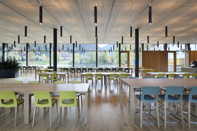 Eine Besonderheit des Systems ist, dass das Holz nicht nur trägt, sondern auch sichtbar bleibt. Denn das Material verschwindet nicht wie sonst üblich hinter Gipswänden – es bildet einen Teil des Innenausbaus. Damit lassen sich Bauten im industriellen Maßstab mit der gleichen Sorgfalt und Wohnlichkeit herstellen wie die kleinen Preziosen, für die das Vorarlberg sonst berühmt ist.