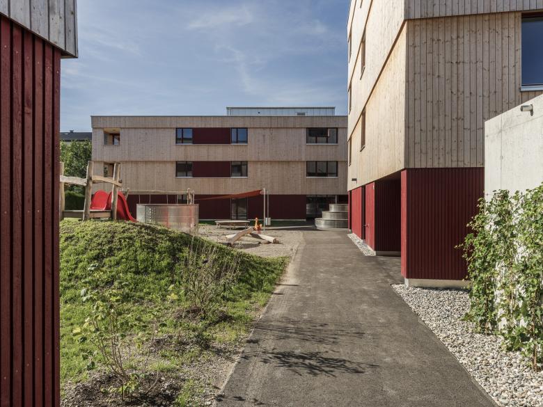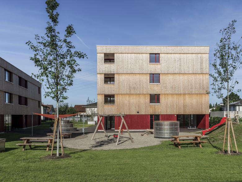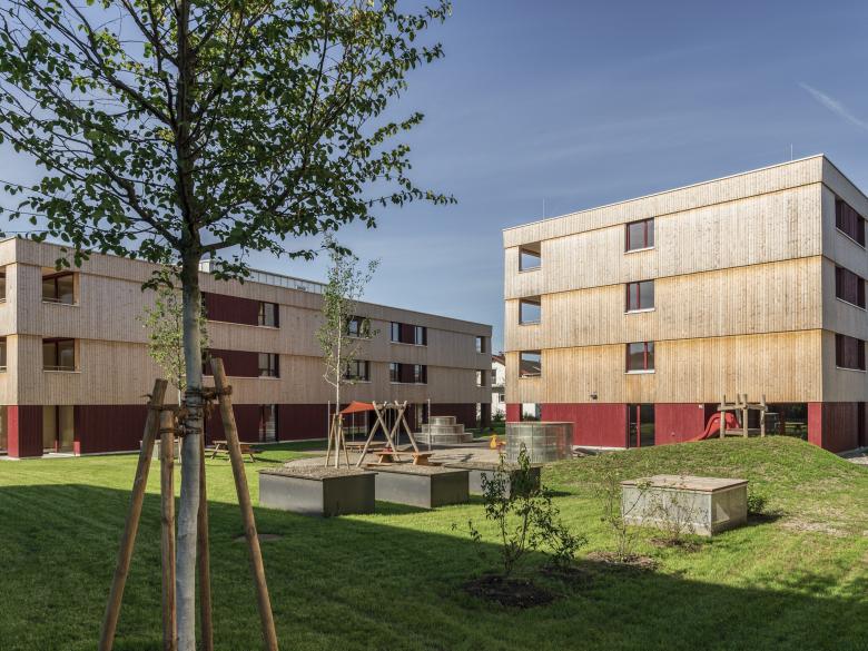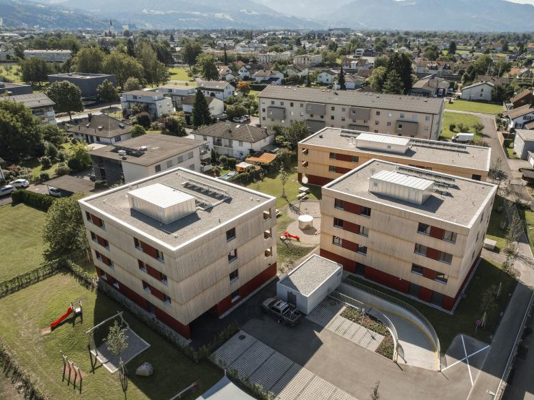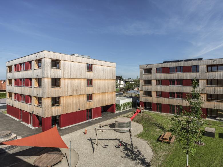 Das engmaschig gewirkte Siedlungsgeflecht des Vorarlberger Rheintales wird von Ackerland, Obstwiesen und Gärten durchgrünt. Im Rahmen einer nachhaltigen Raumplanung erfolgt die behutsame bauliche Verdichtung, um den ursprünglichen Charakter der gewachsenen Mischquartiere zu bewahren. In diesem Sinne entstand im Nordwesten der Marktgemeinde Lauterach eine familienfreundliche und kostengünstige Wohnanlage auf dem Grund der Pfarre im Baurecht.