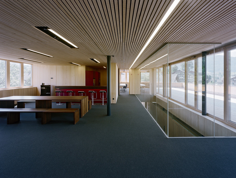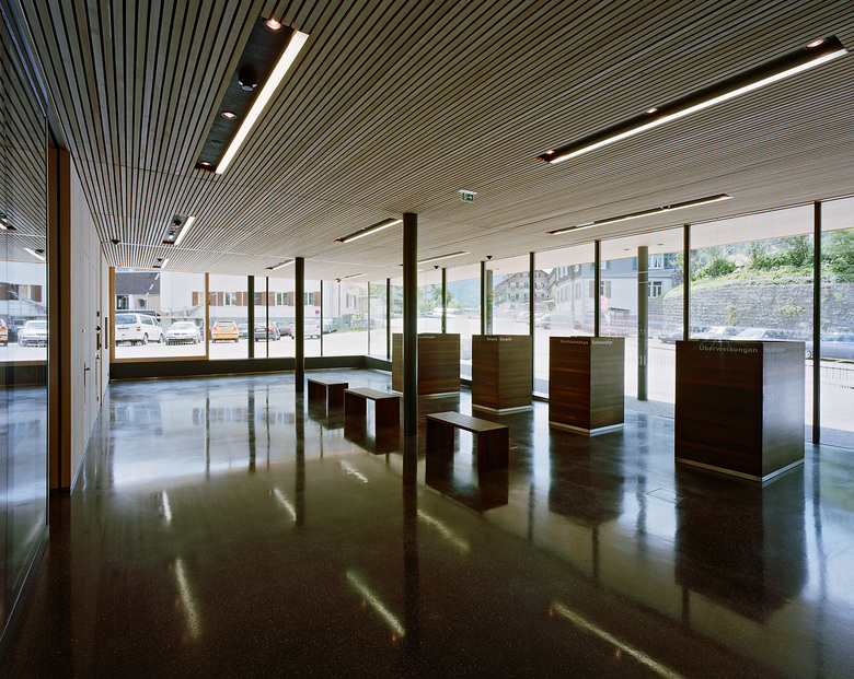 Die einzelnen Geschosse wurden den jeweiligen Geschäftsabläufen zugeordnet: Das Erdgeschoss bedient das Segment der Privatkundenbetreuung in einer großzügig bemessenen Kundenhalle. Das 1. Obergeschoss beherbergt die Firmenkundenbetreuung und den Vorstand, während im 2. Obergeschoss die Verwaltung Platz findet. Das 3. Obergeschoss wurde als Sozial-Bereich für die Mitarbeiter bzw. für Schulungen vorgesehen, eine großzügige Dachterrasse bietet einen weitläufigen Rundumblick auf Egg.