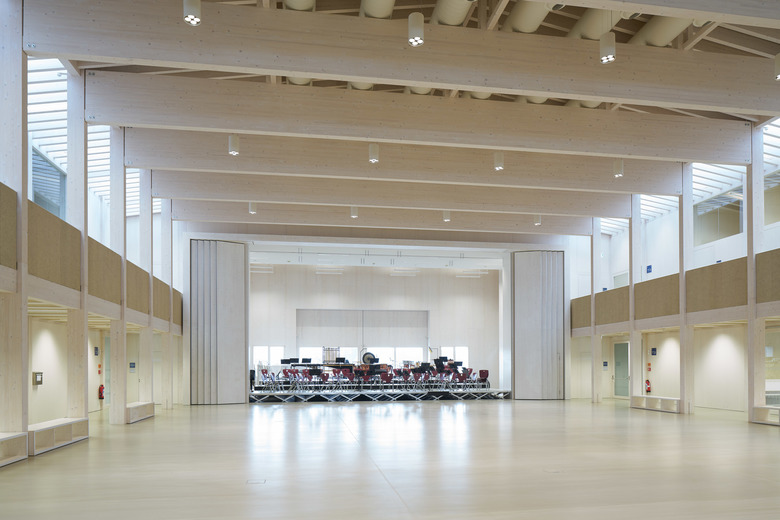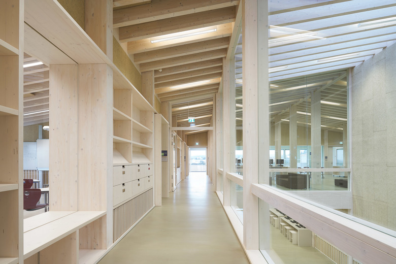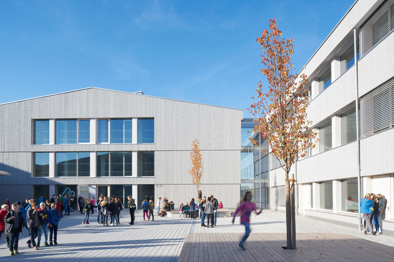 Um diese hochgesteckten Ziele zu erreichen, stehen Architektur und Technik im Einklang: Die Grundlage dafür bildet die integrale Planung, die räumliche, statische und technische Aspekte unter ein Dach bringt. Wie diese Faktoren am Schmuttertal Gymnasium zusammenspielen, untersucht die Deutsche Bundesstiftung Umwelt als Forschungsprojekt – damit das Modell „Diedorf“ auch für andere Schulen nutzbar gemacht werden kann. Das einzig Konstante ist der Wandel. Diese Binsenwahrheit hat weitreichende Auswirkungen auf die Architektur von Schulhäusern: Die Planer müssen die Zukunft der Pädagogik vorausahnen und trotzdem klare Strukturen und präzise zugeschnittene Räume für die Gegenwart entwerfen. Als öffentliches Gebäude soll ein Schulhaus darüber hinaus Anforderungen an energetische und soziale Nachhaltigkeit erfüllen. All diese Vorgaben erfüllt das Gymnasiums in der Marktgemeinde Diedorf im Landkreis Augsburg als Holzbau mit einer starken und schlüssigen Struktur.