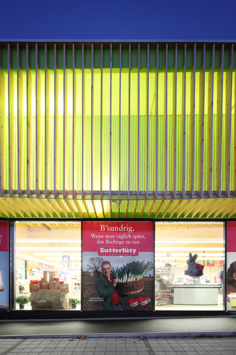 Die neue Generation der Sutterlüty Märkte bieten hohe markthallenähnliche Räume und ein einheitliches Funktionsprinzip, wobei die Außengestaltung aller Märkte unterschiedlich ist.