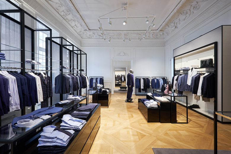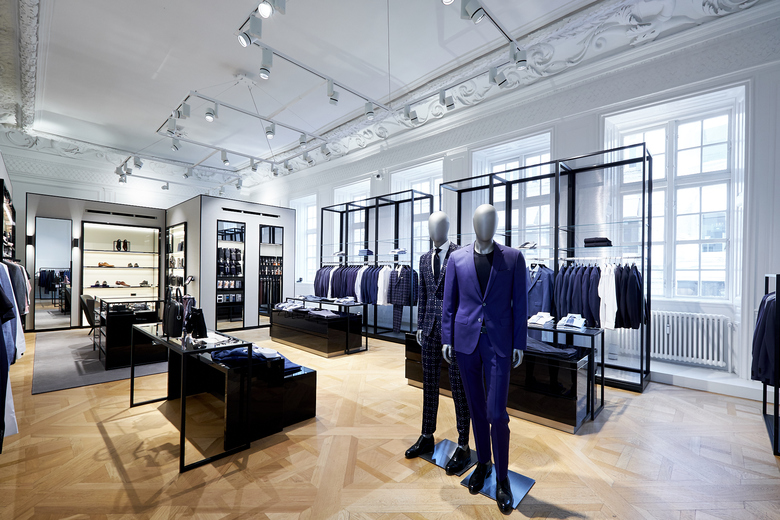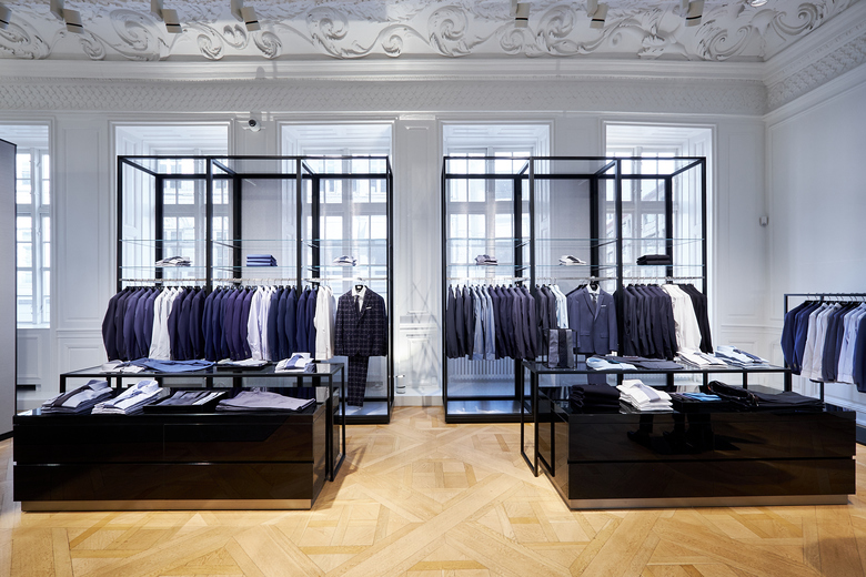 Der Store in Kopenhagen wurde 2017 renoviert und eröffnete im Mai in einem neuen Design. Auf einer Fläche von rund 630m² und auf zwei Ebenen werden die Kollektionen präsentiert. Hohe historische Räume mit Sprossenfenstern und Stuckdecken schaffen im Obergeschoss ein ganz besonderes Ambiente.