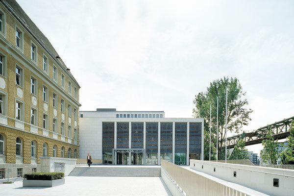 Architektur im Spannungsfeld zwischen Historie und Zeitgeist: ein neues Justizzentrum errichtet im Kontext zweier denkmalgeschützter Gerichtsbauten auf der sogenannten Gerichtsinsel in der Wupper. Der Entwurf trägt sowohl dem städtebaulich herausragenden Stellenwert dieses Ortes Rechnung als auch der Entwicklung der Justizbehörde zu einer bürgernahen, transparenten Institution.