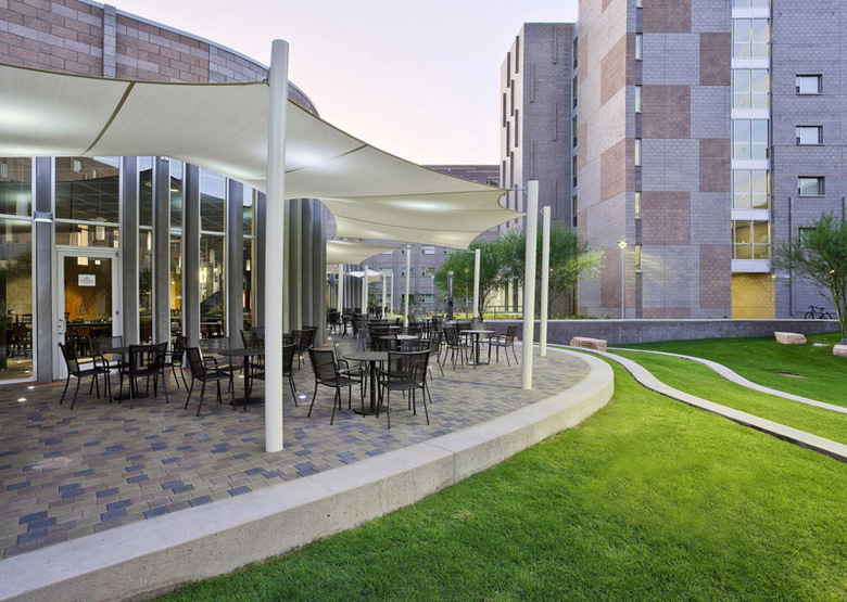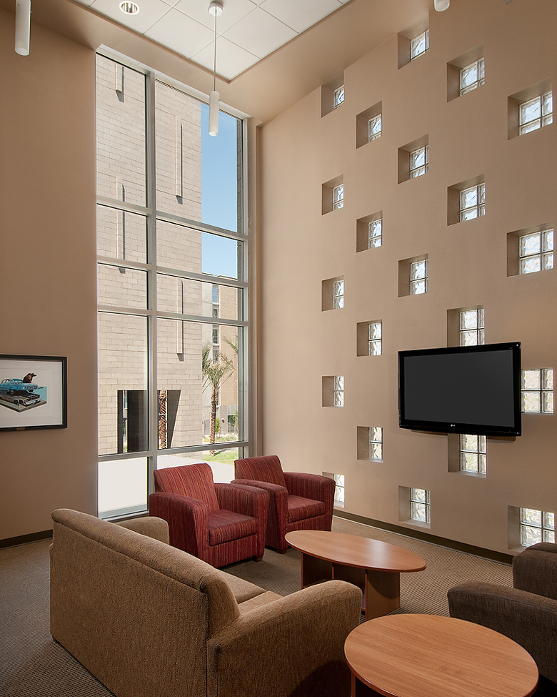 College dining includes a variety of informal and formal, open and closed rooms to support different needs and programs. Emphasizing Barrett as an academic community, classrooms and faculty offices punctuate the main walkway adjacent to the Academic Court. A generous landscaped public court enhances the prominent southeast corner, welcoming all to the ASU campus. The facility has achieved LEED gold certification.