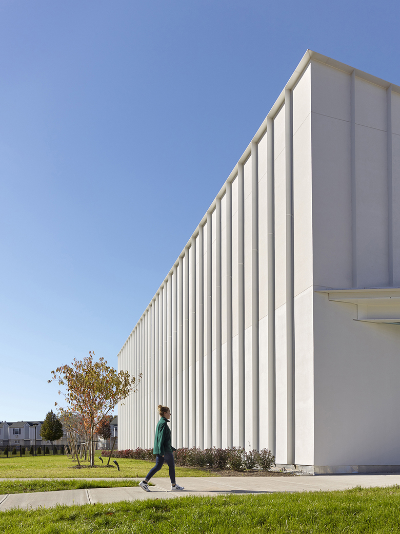 Motivated to provide vital education, recreation and training services to the underserved citizenry of Newark, New Jersey, the Newark Housing Authority tapped us to design a facility that would be a social collector; a place where neighbors could gather, exercise, and receive training to improve their chances for gainful employment in a rapidly transforming digital-based economy. Our design harnesses transparency to convey a sense of welcome and openness in the community. The luminous container is a beacon of hope and a pleasant place to gather, learn and play. The building’s triangular form results from the shifted urban grid where it meets Weequahic Park. Its bespoke design and full height windows allow passersby to witness the energy and rich roster of activities housed within and know that a substantive investment has been made in their future. The Training Recreation and Education Center can reinvent its neighborhood, reinvigorate the citizenry, and ultimately change their future by providing them access to the programs and tools they need to succeed in a building that engenders productivity, connectedness and positive change.