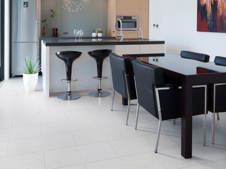 モダンで清潔な印象の、汚れやキズ、水にも強い機能派です。