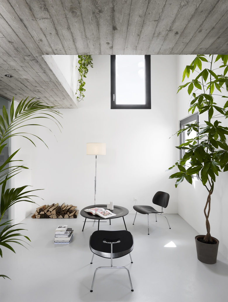 The double height space in the living room increase the perception of verticality and size of the spaces.