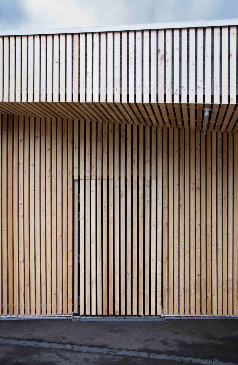 Von Beginn wurden die Nutzer in den Planungsprozess eingebunden und haben maßgeblich am Bau mitgewirkt. Die komplette Fassade sowie die Abhangdecke wurden in Eigenleistung der Jugendlichen ausgeführt.