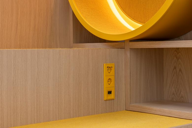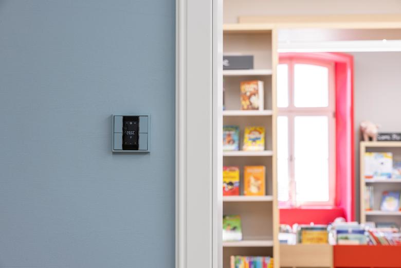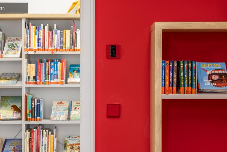 Die Lesetreppe, das helle Lesecafé und die offenen Bibliotheksräume zeigen beispielhaft, wie sorgfältig komponierte Farb- und Materialwelten Atmosphäre schaffen. Es entsteht ein fröhlicher Ort, der Ruhe und Offenheit gleichermaßen ausstrahlt. Die JUNG Komponenten sind dabei nicht nur technische Ausstattung, sondern integraler Teil der Gestaltung. Sie machen spürbar, dass Design und Funktion hier eine Einheit bilden.