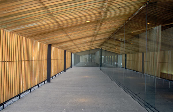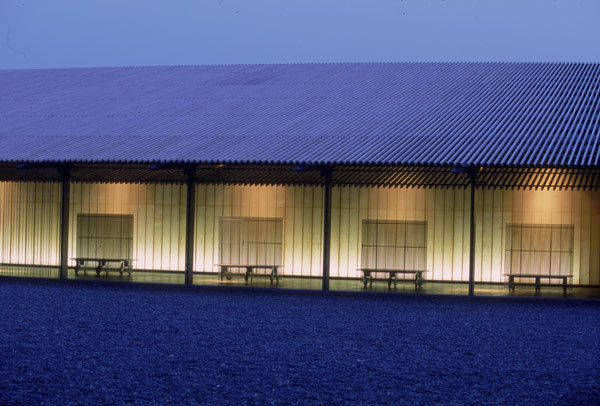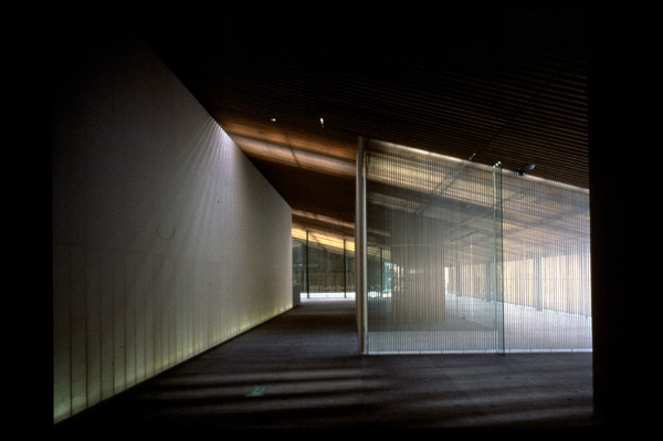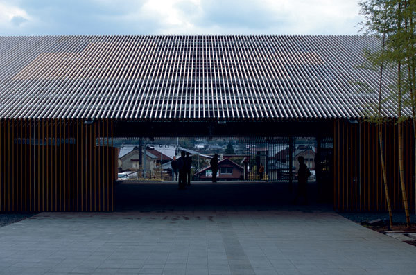 This museum is dedicated to the works of the famous Ukiyo-e artist Hiroshige Ando. The design represents an attempt to materialize in architecture the unique spatial structure that Hiroshige created in his woodblock prints. In contrast with the perspective techniques used by many Western painters, he expressed three-dimensional space through the superposition of layers. Hiroshige’s work had a major impact on the Impressionists as well as on the architecture of Frank Lloyd Wright. Here, we used wooden louvers made of local cedar to materialize this superposition of layers. The cedar was treated with fireproofing and rot-proofing processes to allow us to use it on the roof as well.