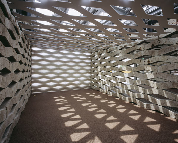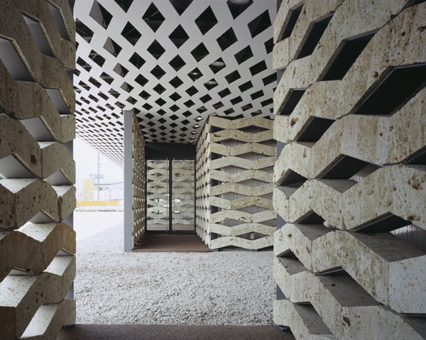 Debris of Oya stone from the storehouse are reused and combined with steel plates arranged diagonally in order to create attempts to achieve transparency by making the most of the material’s texture.