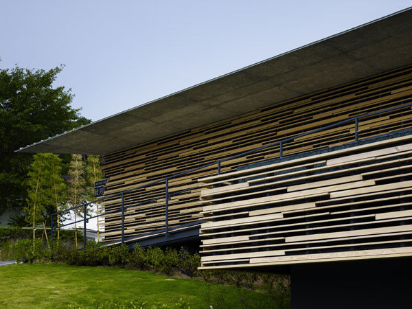 One of our biggest challenges in this project was to integrate three entirely different volumes – a big box, a small box, and a linear form – via several common identities. One of those identities is the box, which also serves as a roof. The other is the concept of an architectural form that is “made of,” but not “covered with,” a natural material, in this case wood.