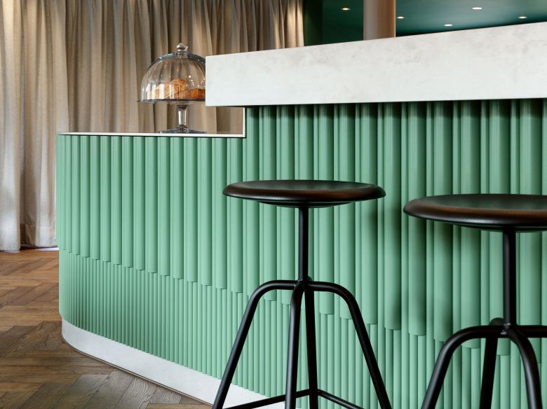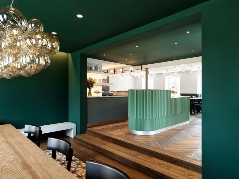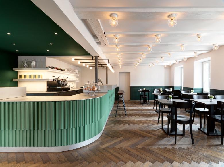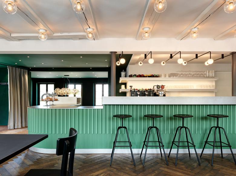 Für das «Kafi Linde» haben wir ein Café & Bar-Konzept umgesetzt, das die Faktoren Genuss und Zeit zusammenbringt. Dank der Raumgestaltung bietet das Lokal mit seiner ungezwungenen Atmosphäre das richtige Angebot für alle Gemüter. Sei es das gemeinsame Abendessen für die ganze Familie, ein festlicher Empfang oder ein Glas guter Wein mit Freunden. Dabei war es wichtig, jeweils einen «Raum im Raum» zu entwickeln, damit die fliessende Gesamtwirkung nicht durch Abtrennungen beeinträchtigt wird. Um die zentrale Bar herum wird der Gästeraum neu organisiert.
