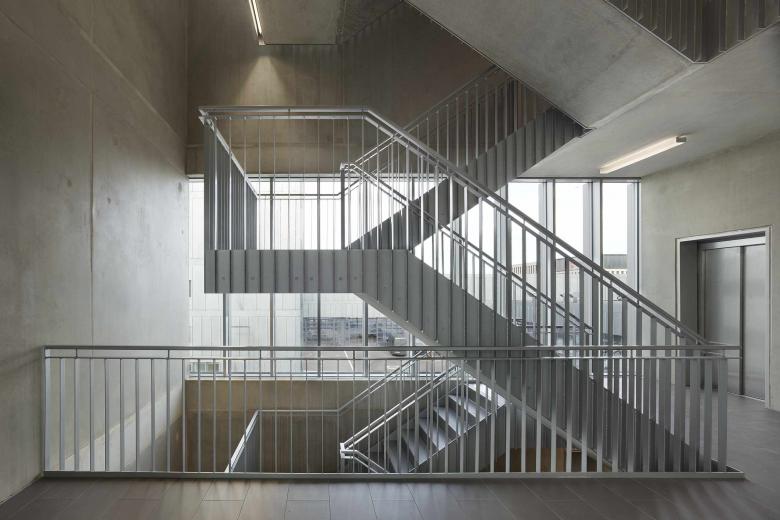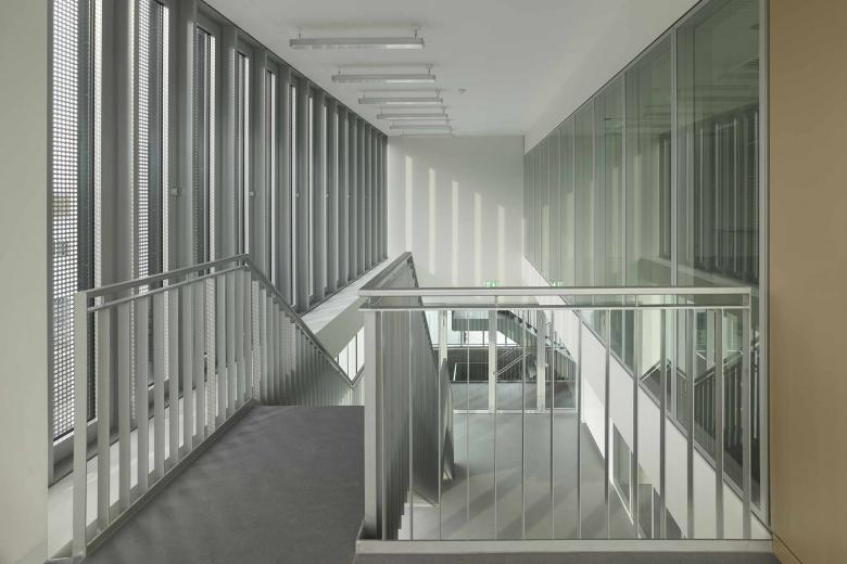 Gestaltungsziel ist der gestalterische Zusammenhalt des Ensembles durch die ruhige Anordnung strukturierter Fassaden und eine Gebäudekubatur, die sich gleichermaßen aus der Umgebung und aus der Funktionalität heraus entwickelt. Es entsteht ein räumlich – bauliches Kontinuum, das durch die horizontale Gliederung der differenziert reliefierten Metallfassaden wirkungsvoll inszeniert wird.
