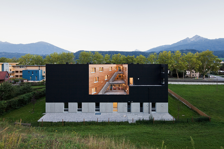 Auf dem Grundstück der bestehenden BP Tankstelle an der Westeinfahrt von Innsbruck wird dem markanten Neubau zusätzlich eine studentische Nutzung zugeführt. Der Entwurf sieht eine charmante Überbauung der Tankstelle vor, in der Wohnraum für 85 Studierende geschaffen wird. Das auskragende Tankstellendach mit seiner expressiven Aufweitung zur Straße hin, ist bereits von weitem sichtbar und leitet den Kunden einladend unter sein grünes Dach. Die Nutzungserweiterung dieses Ortes durch ein 4-geschossiges Studentenheim, welches sich behutsam von hinten an die Tankstelle annähert und diese letztendlich überdeckt, lässt ein spannendes Gebäude entstehen.
