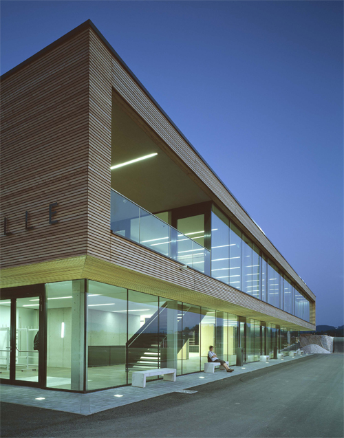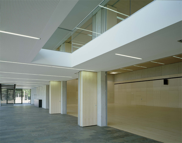 Wallerseehalle - ein Mehrzweckgebäude mit multifunktionalen Nutzungsmöglichkeiten für die Gemeinde Henndorf. Die Aufgabe bestand darin, einen Saal mit Bühnenraum und entsprechenden Foyer- und Nebenräumlichkeiten zu schaffen, der sowohl kulturellen Veranstaltungen als auch sportlichen Zwecken dienen würde. Besonderes Augenmerk wurde auf die städtebauliche Situation am Dorfrand und die Formulierung einer baulichen Kante zum Landschaftsraum hin, gelegt. Die Einbeziehung des Grünraumes, als auch die Sichtbeziehungen in den Landschaftsraum stellte ein wesentliches Thema im Entwurf dar.