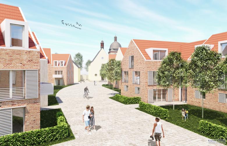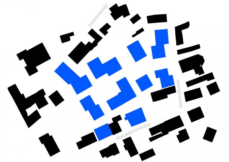 Prägend für das Quartier wird die verbreiterte Sichtachse von der katholischen St. Michaelskirche in der Kirchstraße zur evangelischen Kirche an der Ecke Schubert- Rheinstraße sein. Die Bebauung in der Kirchstraße wird vor der katholischen Kirche etwas zurückspringen, sodass ein kleiner Platz vor dem Gotteshaus entsteht.